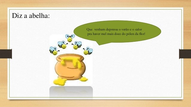 3. 3. Diz a abelha: Que venham depressa o verão e o calor pra haver mel mais doce do pólen da flor!