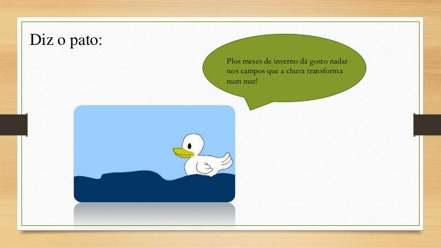 6. 6. Diz o pato: Plos meses de inverno dá gosto nadar nos campos que a chuva transforma num mar!