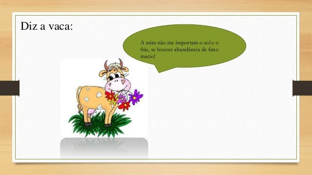 7. 7. Diz a vaca: A mim não me importam o sol e o frio, se houver abundância de feno macio!