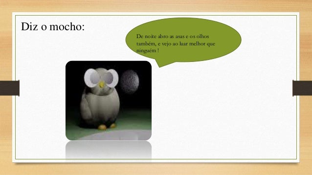 8. 8. Diz o mocho: De noite abro as asas e os olhos também, e vejo ao luar melhor que ninguém !