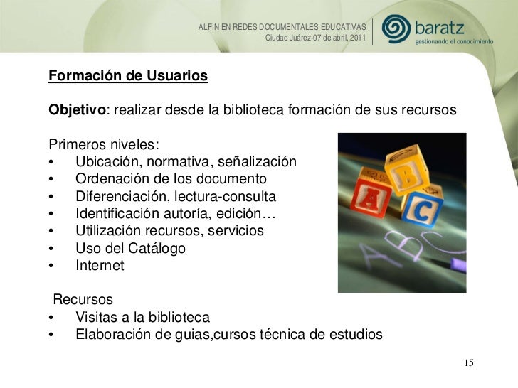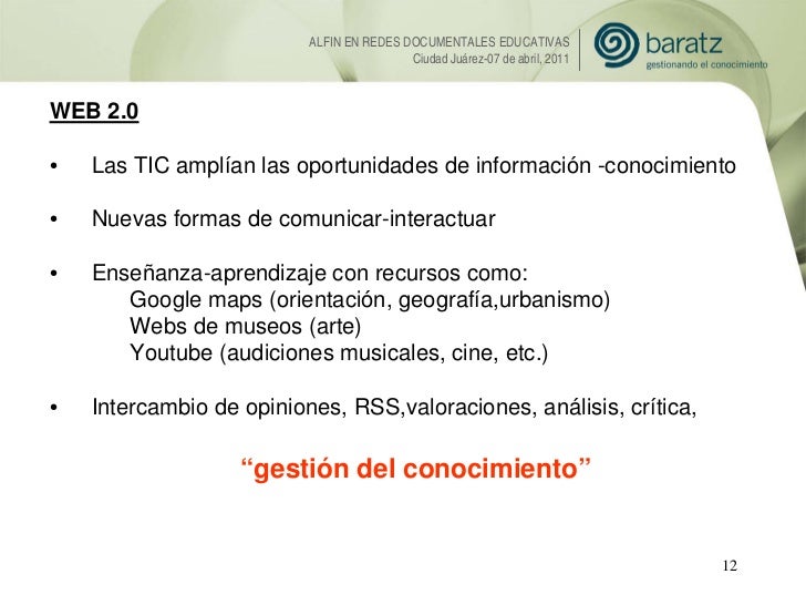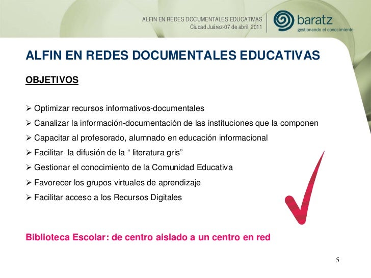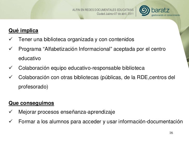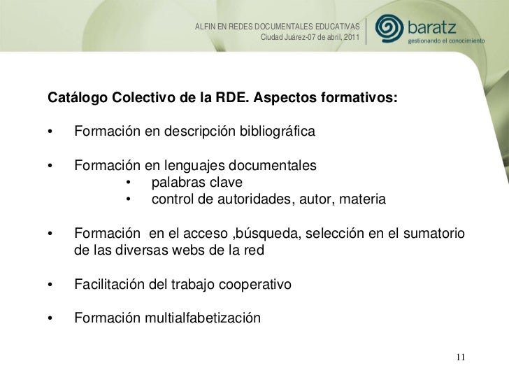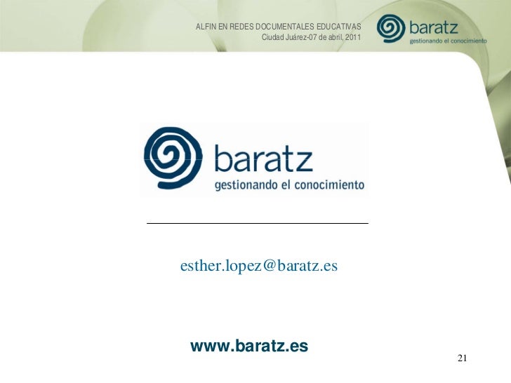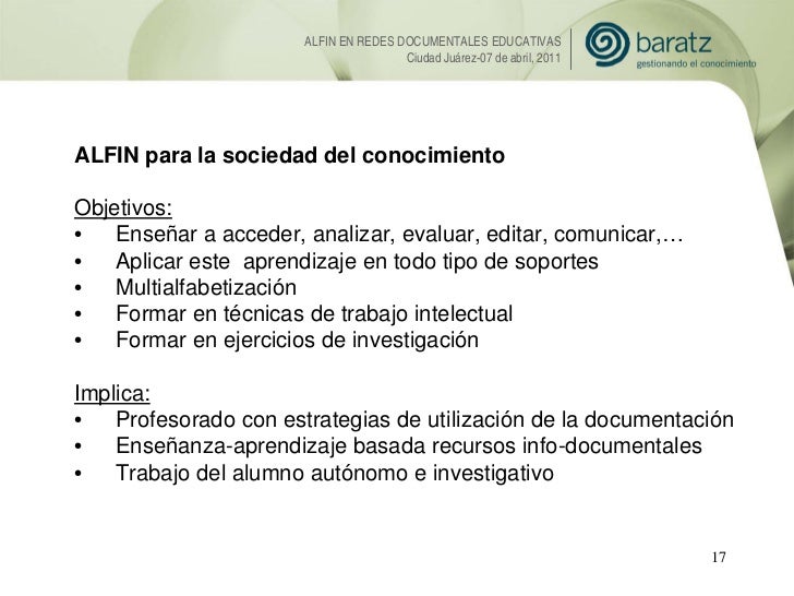 Presentación de Esther López (Baratz) sobre la Alfabetización informacional en Redes Documentales Educativas. 7mo Encuentro Internacional de Habilidades Informativas
