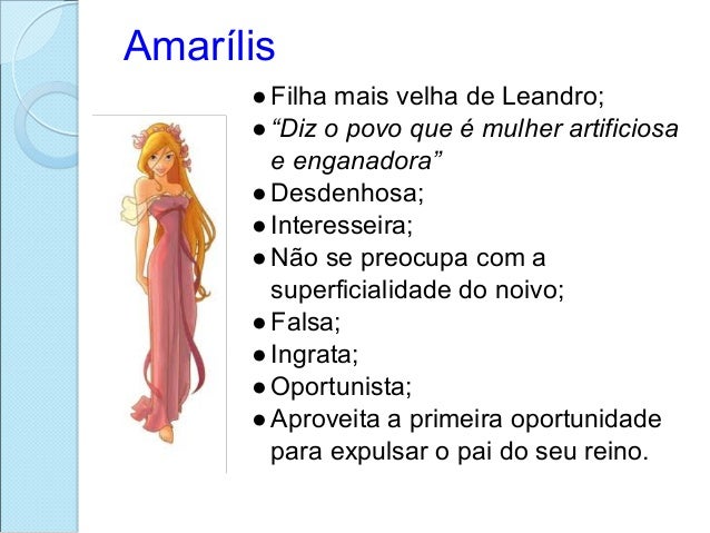 Amarílis      ● Filha mais velha de Leandro;      ● “Diz o povo que é mulher artificiosa        e enganadora”      ● Desde...