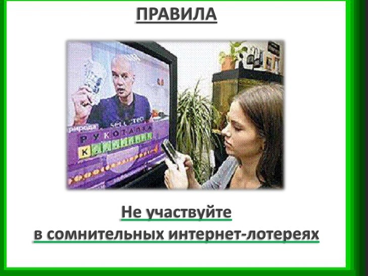 13. 13. ПРАВИЛА Не участвуйте в сомнительных интернет-лотереях