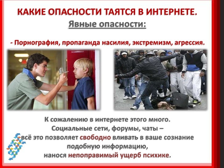 2. 2. КАКИЕ ОПАСНОСТИ ТАЯТСЯ В ИНТЕРНЕТЕ. Явные опасности: - Порнография, пропаганда насилия, экстремизм, агрессия. К сожалению в интернете этого много. Социальные сети, форумы, чаты – всё это позволяет свободно вливать в ваше сознание подобную информацию, нанося непоправимый ущерб психике.
