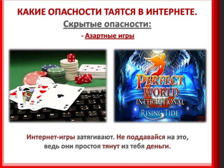 7. 7. КАКИЕ ОПАСНОСТИ ТАЯТСЯ В ИНТЕРНЕТЕ. Скрытые опасности: - Азартные игры Интернет-игры затягивают. Не поддавайся на это, ведь они простоя тянут из тебя деньги.