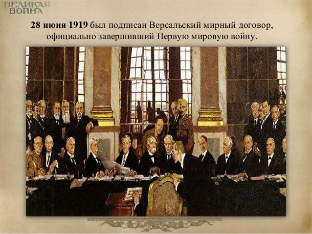 101. 101. 28 июня 1919 был подписан Версальский мирный договор, официально завершивший Первую мировую войну.