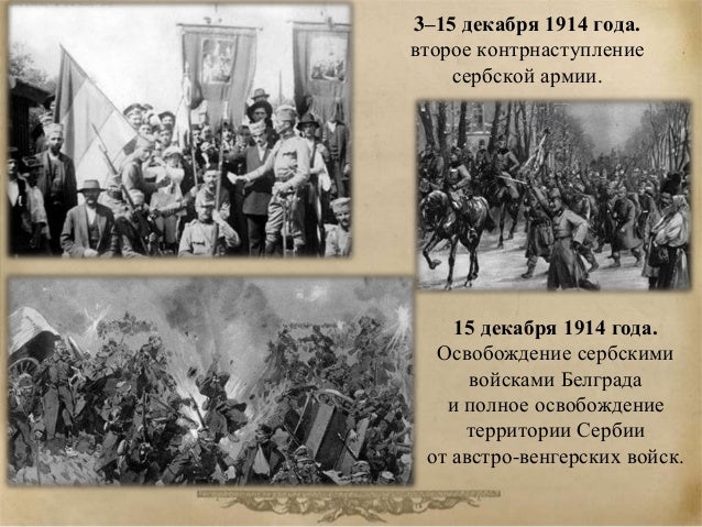 28. 28. 3–15 декабря 1914 года. второе контрнаступление сербской армии. 15 декабря 1914 года. Освобождение сербскими войсками Белграда и полное освобождение территории Сербии от австро-венгерских войск.