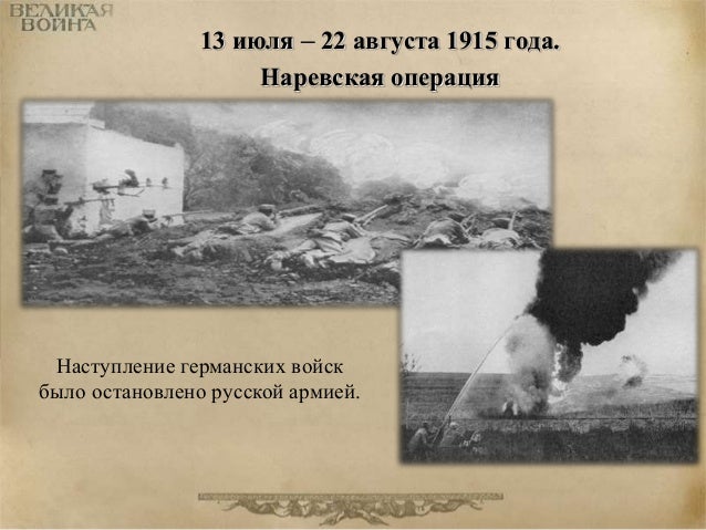 43. 43. 13 июля – 22 августа 1915 года. Наревская операция Наступление германских войск было остановлено русской армией.