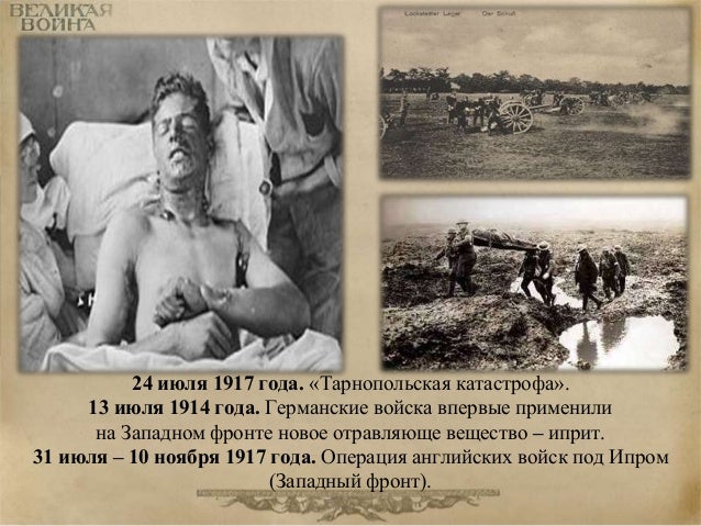 80. 80. 24 июля 1917 года. «Тарнопольская катастрофа». 13 июля 1914 года. Германские войска впервые применили на Западном фронте новое отравляюще вещество – иприт. 31 июля – 10 ноября 1917 года. Операция английских войск под Ипром (Западный фронт).