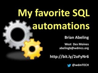 1. 1. My favorite SQL automations Brian Abeling West Des Moines abelingb@wdmcs.org http://bit.ly/2oFyNr6 @wdmTECH