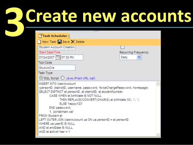 10. 10. Create new accounts Automatically creates accounts for any new students and sets user id / password. 3