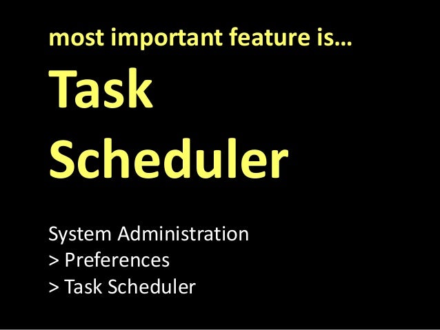 2. 2. most important feature is… Task Scheduler System Administration > Preferences > Task Scheduler