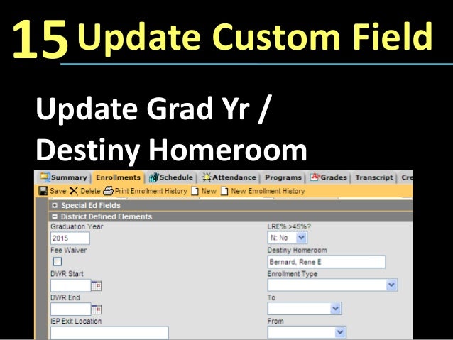 28. 28. Update Custom Field Update Grad Yr / Destiny Homeroom 15