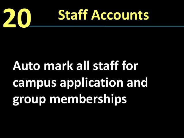 40. 40. Staff Accounts Auto mark all staff for campus application and group memberships 20