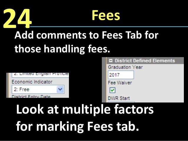 46. 46. Fees 24 Look at multiple factors for marking Fees tab. Add comments to Fees Tab for those handling fees.