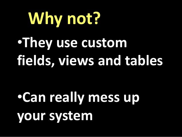 5. 5. Why not? •They use custom fields, views and tables •Can really mess up your system