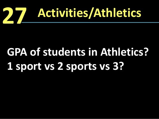 52. 52. Activities/Athletics 27 GPA of students in Athletics? 1 sport vs 2 sports vs 3?