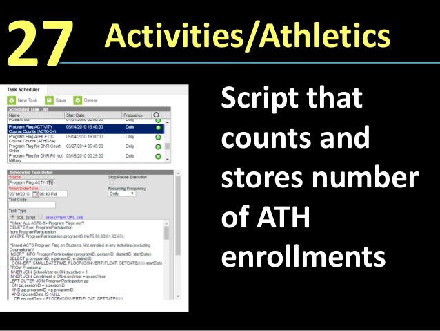 55. 55. Activities/Athletics 27 Script that counts and stores number of ATH enrollments