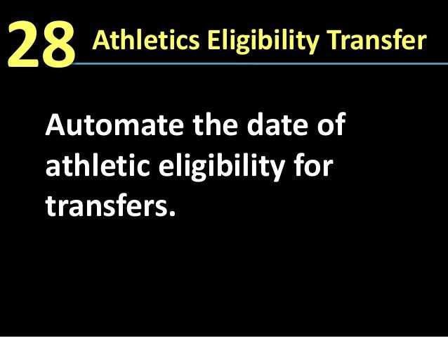 57. 57. Athletics Eligibility Transfer 28 Automate the date of athletic eligibility for transfers.