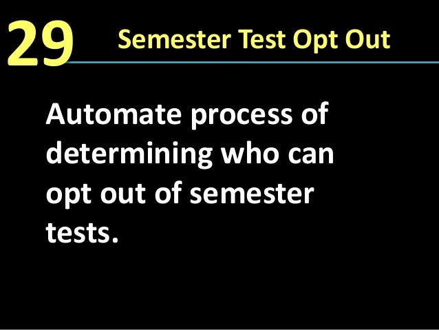 58. 58. Semester Test Opt Out 29 Automate process of determining who can opt out of semester tests.