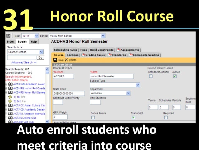 61. 61. Honor Roll Course 31 Auto enroll students who meet criteria into course