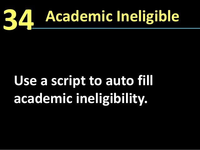 65. 65. Academic Ineligible Use a script to auto fill academic ineligibility. 34