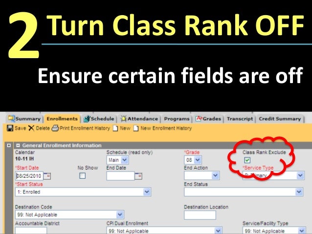 8. 8. Turn Class Rank OFF Ensure certain fields are off 2