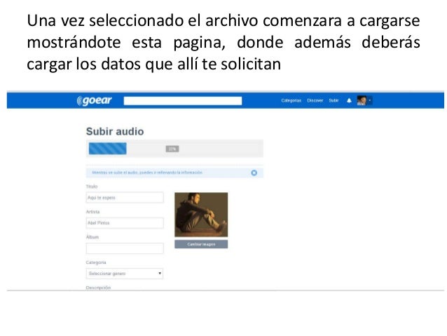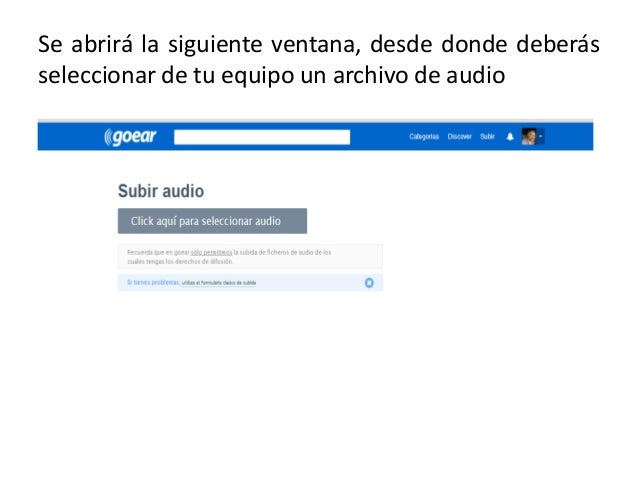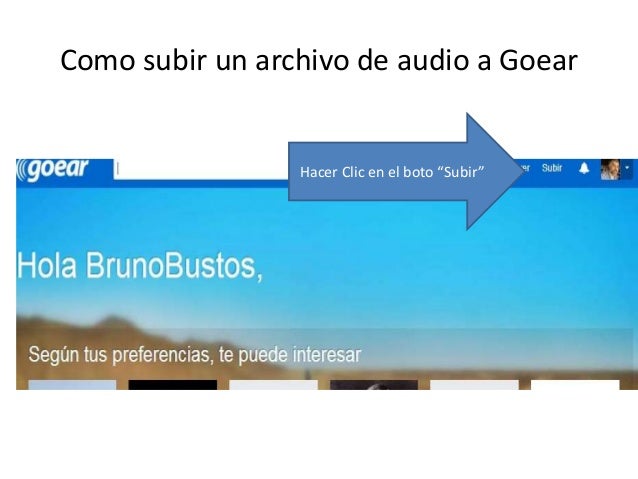 13. 13. Como subir un archivo de audio a Goear Hacer Clic en el boto “Subir”