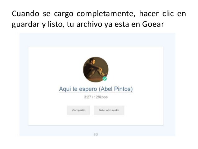 16. 16. Cuando se cargo completamente, hacer clic en guardar y listo, tu archivo ya esta en Goear