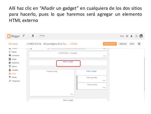 19. 19. Allí haz clic en “Añadir un gadget” en cualquiera de los dos sitios para hacerlo, pues lo que haremos será agregar un elemento HTML externo