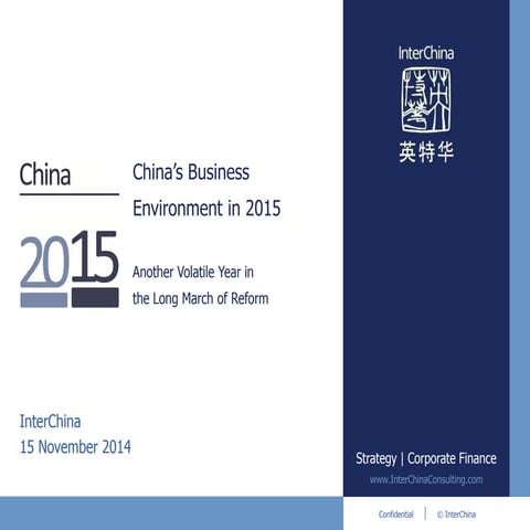 14. 14. 14 | 2014 | BRUNSWICK © 6. Upgrading the economic structure via innovation As a core force for upgrading China’s economic structure, the government will encourage businesses to play a more active role in technological innovation. In addition, China will establish innovation and entrepreneurship platforms for emerging industries, strengthen the protection of intellectual property, and link researchers’ compensation to the market value of their research. In addition, China will continue to remove out dated and high polluting technologies, while strengthening environmental protection laws and punishing those caught polluting. 7.Accelerating the development of social programmes China will strengthen the development of social programmes to promote social justice and balanced development across regions, including increasing government spending and resource allocation to education and deepening reforms in the cultural sector. Reform of the healthcare sector is seen as critical – including reconsidering how hospitals are funded, reforming the system for basic medical insurance schemes, and implementing changes recently made to the one-child family planning policy. 8. Improving people’s wellbeing The government will continue to increase spending on government- subsidised housing and integrate the operation of public and low-cost rental housing, narrow the income gap via reforming the income distribution system, and establishing a unified pension system for rural and urban residents as part of a wider effort to reform its pension schemes. In addition, the government will focus on ensuring employment opportunities to meet demand from new graduates. 9. Building a sound environment Pollution surrounds all those living in China and its constant presence is nature’s red warning against the country’s economic model. It is not sustainable and it has the full attention of the central leadership. The plans start with an overarching goal to reduce PM10 and PM2.5 emissions and calls for the removal of highly polluting energy sources,promotion of electricity generated by non-fossil fuel, and development of unconventional energy sources. In parallel, China will continue to carry out projects for clean water, land restoration, and ecological conservation.