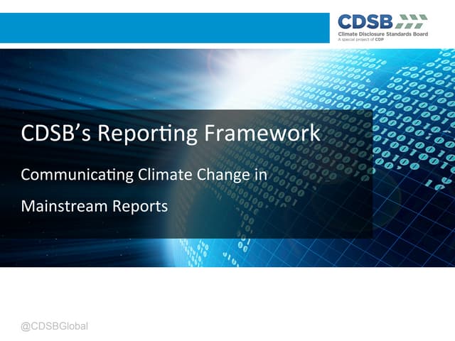 CDSB Framework consultation draft – Dr Jarlath Molloy, Technical Manager, CDSB