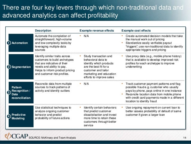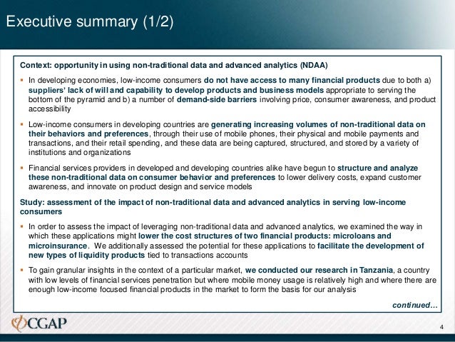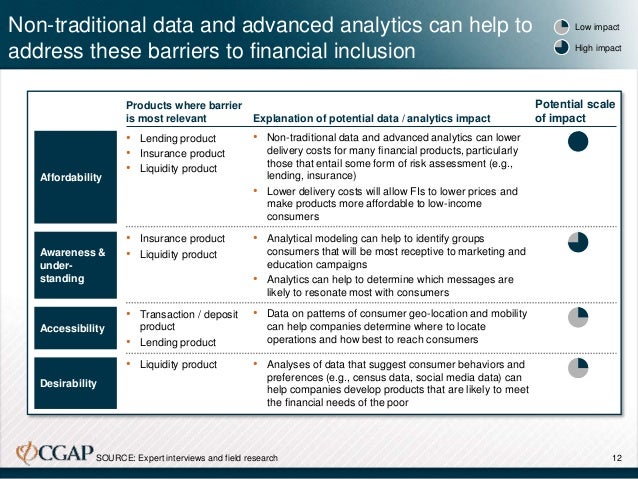 Financial services providers in developed and developing countries alike have begun to structure and analyze these non-traditional data on consumer behavior and preferences to lower delivery costs, expand customer awareness, and innovate on product design and service models