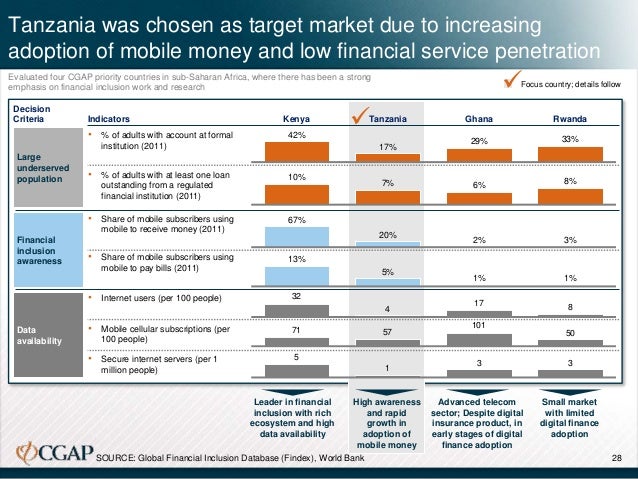 To gain granular insights in the context of a particular market, we conducted our research in Tanzania, a country with low levels of financial services penetration but where mobile money usage is relatively high and where there are enough low-income focused financial products in the market to form the basis for our analysis