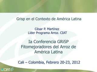 Líder Programa Arroz. CIAT