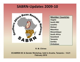 1. SABRN‐Updates 2009‐10 Member Countries Angola A l South DRC Lesotho Malawi Mauritius Mozambique South Africa South Africa Swaziland Tanzania Zambia Zimbabwe R. M. Chirwa ECABREN SC & Gender Workshop, held in Arusha, Tanzania – 14-21 February 2010