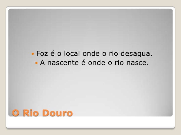 4. 4. O Rio Douro<br />Foz é o local onde o rio desagua.<br />A nascente é onde o rio nasce.<br />