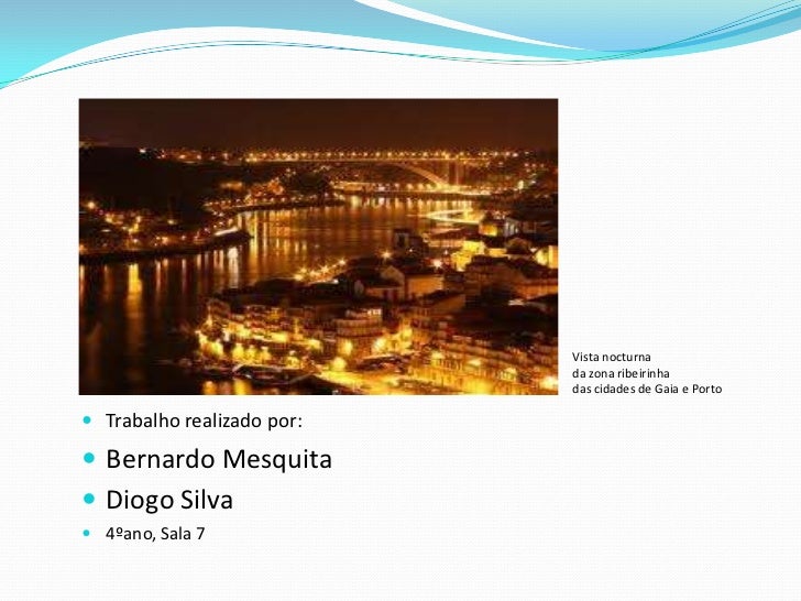 11. 11. Vista nocturna <br />da zona ribeirinha <br />das cidades de Gaia e Porto<br /><ul><li>Trabalho realizado por: