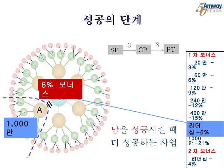 14. 31. 남 을 성공 시킬 때 더 성공하는 사업 1,000 만 SP 성공의 단계 You A 1 차 보너스 20 만 - 3% 60 만 - 6% 120 만 - 9% 240 만 -12% 400 만 -15% 680 만 -18% 1000 만 -21% 2 차 보너스 리더십 - 4% 루 비 - 2% M D- 1.5% 3 차 보너스 여행 , F.A.A, 연말 보너스 리더십 -6% GP 3 PT 3 6% 보너스