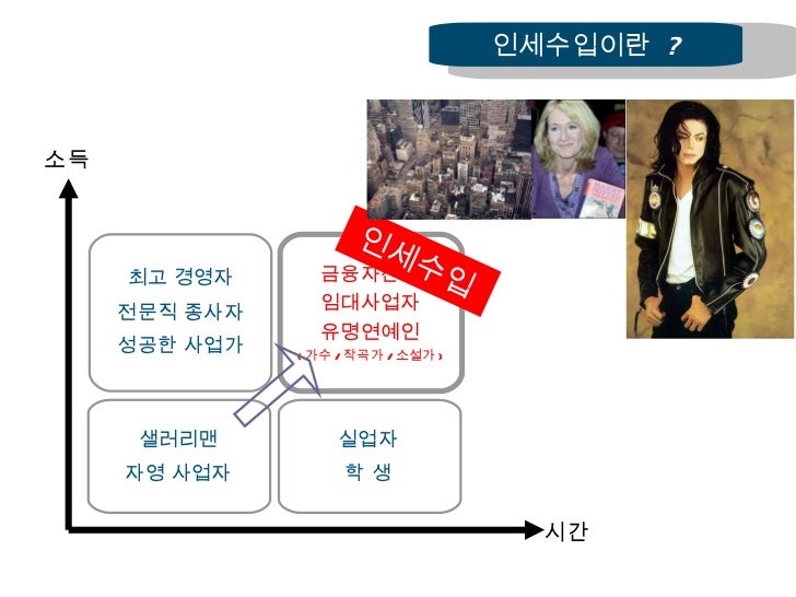 3. 4. 최고 경영자 전문직 종사자 성공한 사업가 샐러리맨 자영 사업자 실업자 학 생 시간 금융자산가 임대사업자 유명연예인 ( 가수 / 작곡가 / 소설가 ) 소득 인세수입 수입과 지출의 곡선 수입과 지출의 곡선 수입과 지출의 곡선 인세수입이란 ?
