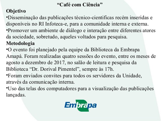 Café com Ciência – divulgação das publicações técnico-científicas em acesso aberto da Embrapa Amapá - Adelina Serrão Ade, Alessandra Rodrigues