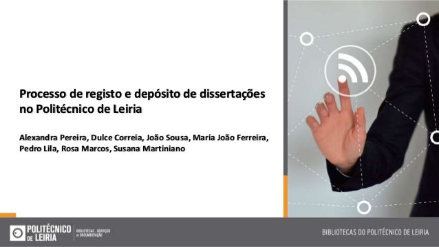 Processo de registo e depósito de dissertações no Politécnico de Leiria - Rosa Marcos, Alexandra Pereira, Dulce Correia, João Sousa, Maria João Ferreira, Pedro Lila, Susana Martiniano