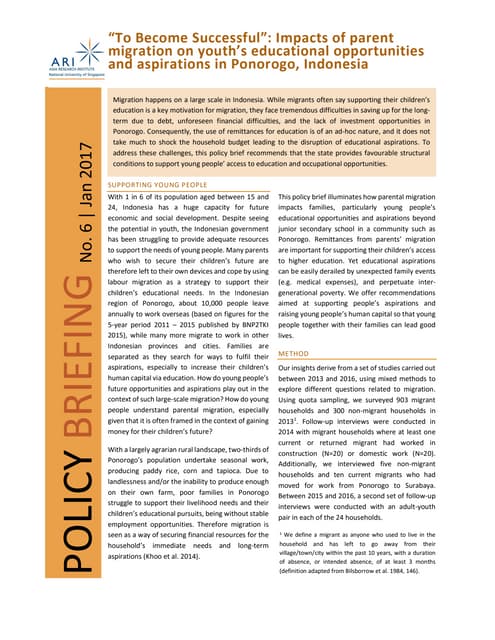 • Increasing both employment and productivityEmployment growth generates new jobs and income for theindividual - from wages in all types of firms, or from self employment, usually in microfirms - while productivity growth has the potential to lift the wages of those employedand the returns to the self-employed. After all, in many low-income countries theproblem is not unemployment, but rather underemployment. Hence, inclusive growth isnot only about employment growth, but also about productivity growth.20 Moreover, it isnot only about wage-employment but also about self-employment which means thatreturns to capital, land and other assets matter to the income potential of the focus groupas shown in the identity above. (WB)