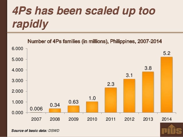 16. 16. 4Ps has been scaled up too rapidly 0.006 0.34 0.63 1.0 2.3 3.1 3.8 5.2 0.000 1.000 2.000 3.000 4.000 5.000 6.000 2007 2008 2009 2010 2011 2012 2013 2014 Source of basic data: DSWD