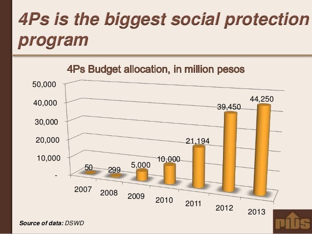 17. 17. 4Ps is the biggest social protection program - 10,000 20,000 30,000 40,000 50,000 2007 2008 2009 2010 2011 2012 2013 50 299 5,000 10,000 21,194 39,450 44,250 Source of data: DSWD