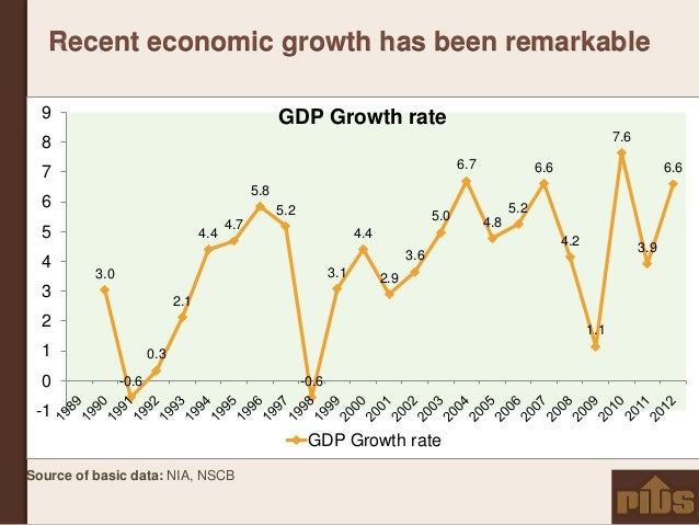3. 3. Recent economic growth has been remarkable Source of basic data: NIA, NSCB 3.0 -0.6 0.3 2.1 4.4 4.7 5.8 5.2 -0.6 3.1 4.4 2.9 3.6 5.0 6.7 4.8 5.2 6.6 4.2 1.1 7.6 3.9 6.6 -1 0 1 2 3 4 5 6 7 8 9 GDP Growth rate GDP Growth rate