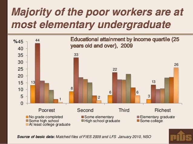 • About 57% of the poorest quartile are at most elementary undergraduate, compared with 16% for the richest quartile
