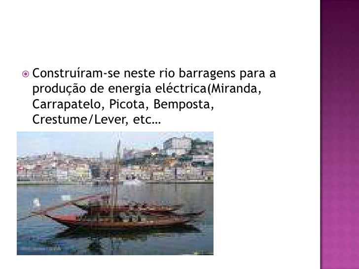 4. 4. Construíram-se neste rio barragens para a produção de energia eléctrica(Miranda, Carrapatelo, Picota, Bemposta, Crestume/Lever, etc…<br />