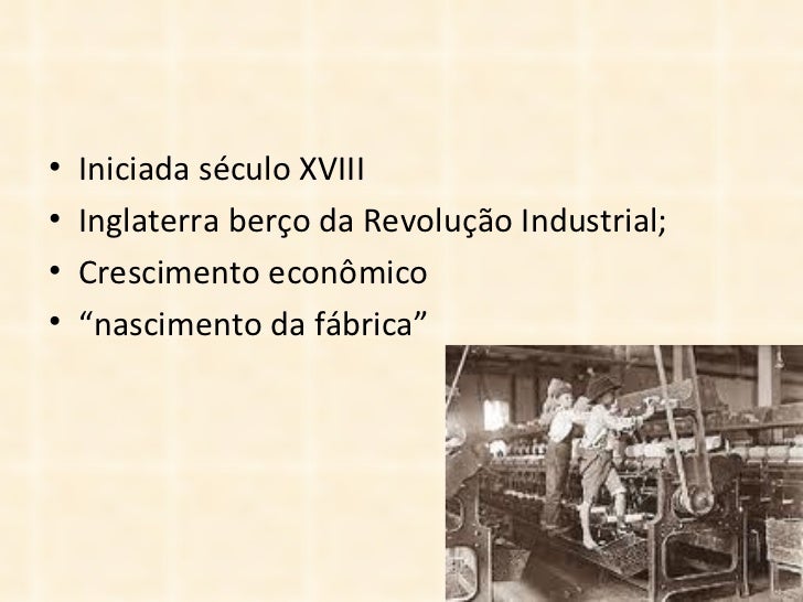 12. 12. • Iniciada século XVIII• Inglaterra berço da Revolução Industrial;• Crescimento econômico• “nascimento da fábrica”